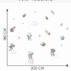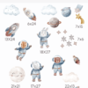 Cameră de băieți decorată cu autocolante de perete animale în spațiu, planete, astronauți, stele, rachete, norișori, stickere acuarelă