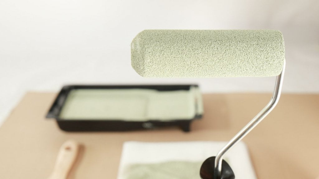 Nimm den Überschuss mit saugfähigem Papier auf. Für eine erfolgreiche Schablone brauchst du wenig Farbe auf der Rolle.